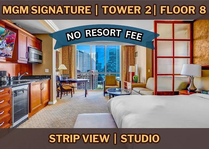 Este apartamento incluye una zona de estar, una cocina completa y una cocina con climatizador para garantizar el máximo confort. El 8Th Flr Mgm Signature Studio, Strip View, No Fee cuenta con 1 dormitorio. Los huéspedes podrán usar 1 cuarto de baño. También ofrece secadores de pelo y toallas.